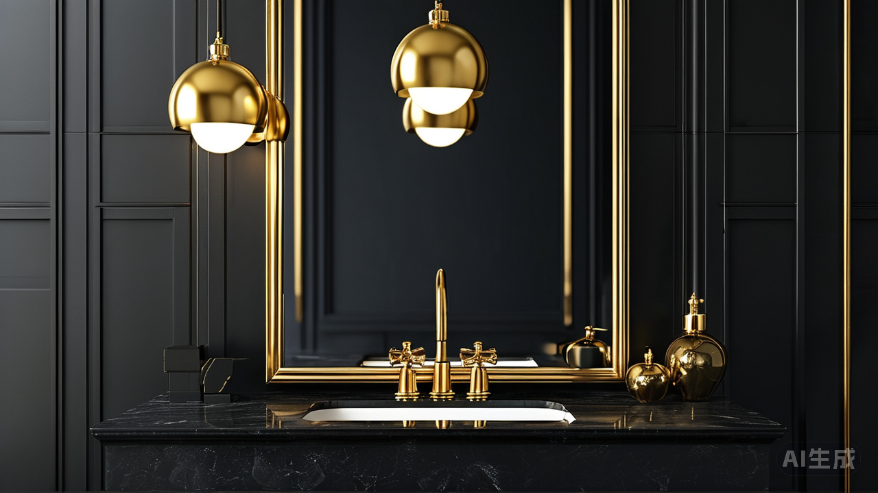 这墨底金辉的交融,最终指向的是一种极具艺术气息的生活表达。深沉的黑赋予空间沉淀的力量与神秘感,暖调的金则注入一份恰到好处的温度与奢雅。它们彼此制约又相互成就,在卫浴这一方私密天地里,共同书写着内敛而不凡的空间情绪——轻奢的终极要义,恰在于这份懂得节制的优雅表达。