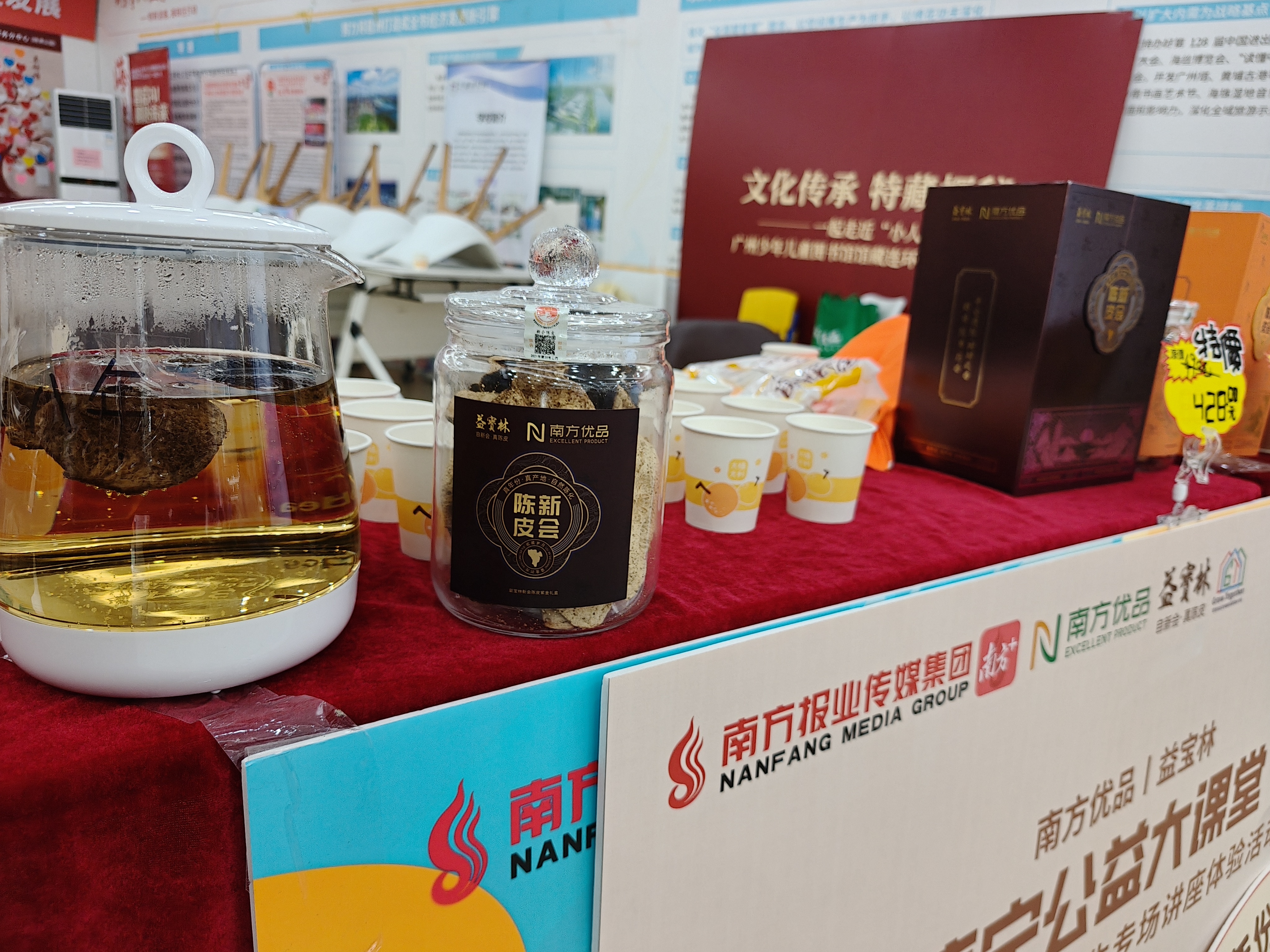 值得一提的是,在南方优品助力“百县千镇万村高质量发展工程”精品展销区,展销了益宝林新会陈皮橙意、紫金礼盒等联名产品,从传统的散装陈皮,到精致的陈皮白茶包、陈皮六堡茶等衍生产品,种类丰富,品质上乘。工作人员耐心地为大家介绍每一款产品的特点与食用方法,不少参与者在了解后当场下单购买,希望将这份健康带回家。
