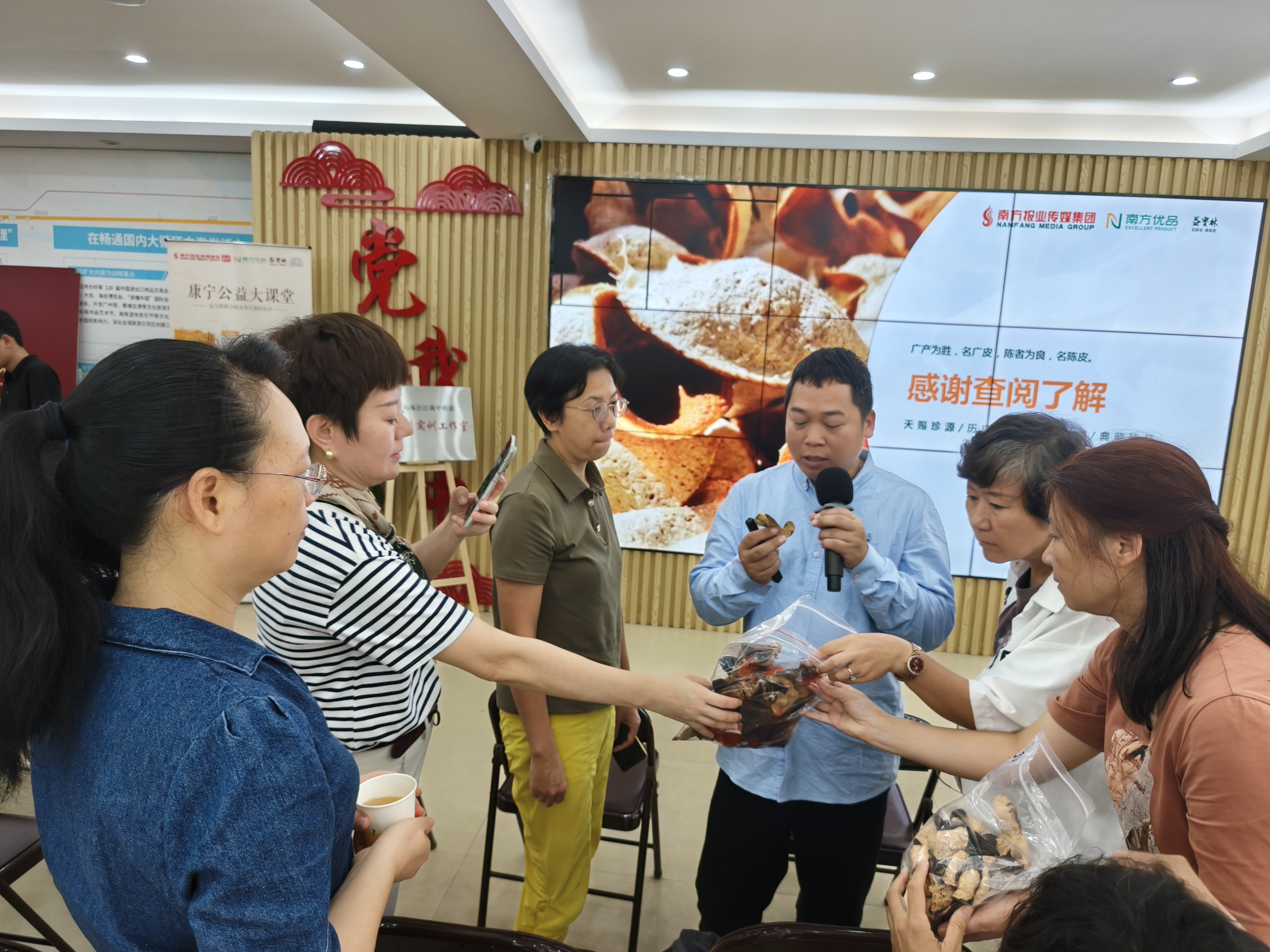 6月14日,广州市海珠区江南中街党群服务中心(晓港公园)一片热闹景象,社区健康主题活动月重磅开启,一场集知识、体验、趣味于一体的健康盛宴拉开帷幕!南方报业南方优品联合益宝林新会陈皮以“名优产品进湾区”的方式走进“康宁公益大课堂”!通过科普养生、健康宣讲、互动体验等形式,将益宝林新会陈皮的文化魅力传递到广州社区。