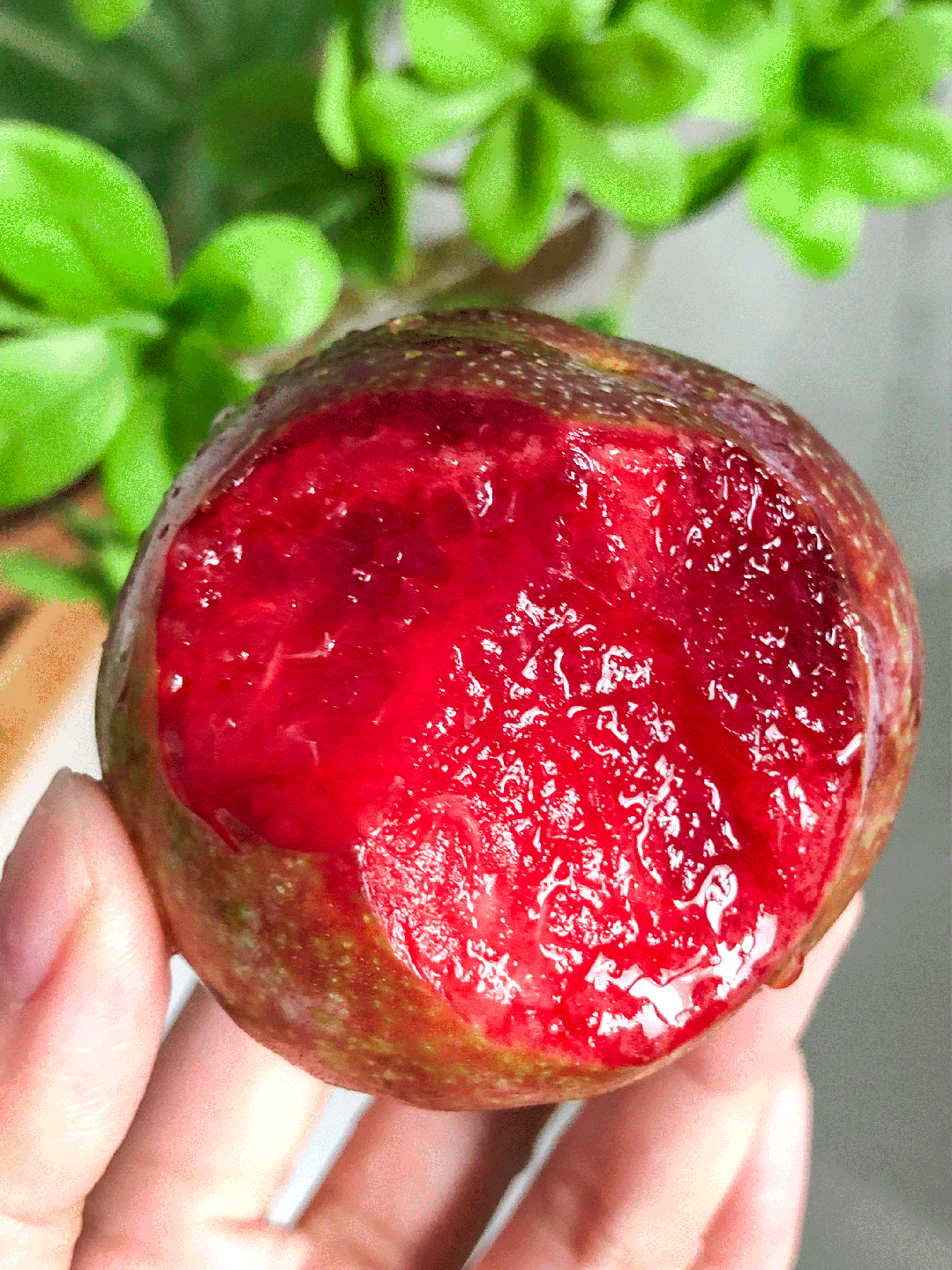 指尖轻拂,紫红果皮若隐若现